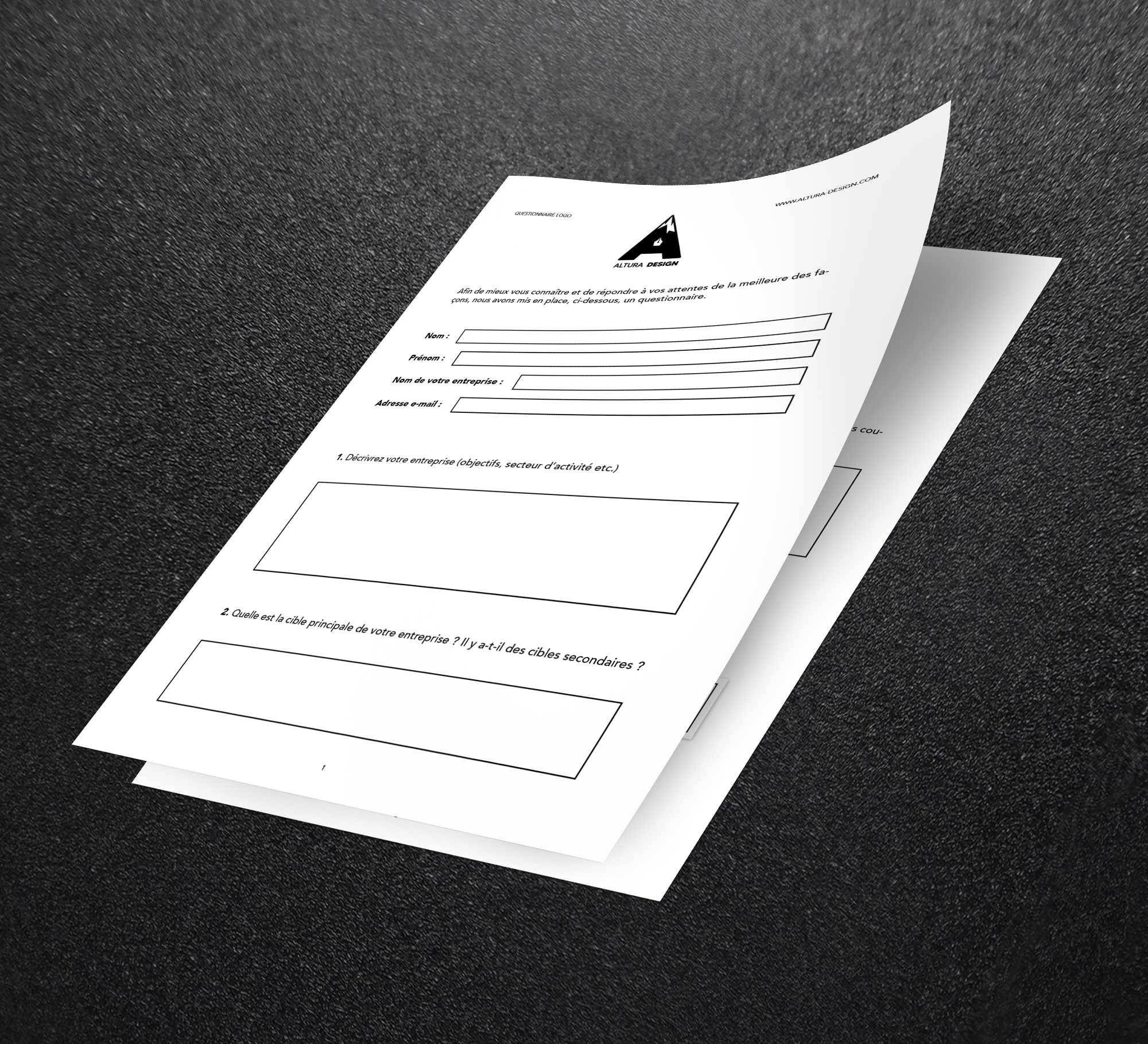 Si vous souhaitez faire appel à nos services, nous vous invitons donc à remplir un de ces questionnaires puis à nous le renvoyer à l'adresse email suivante : contact@altura-design.com